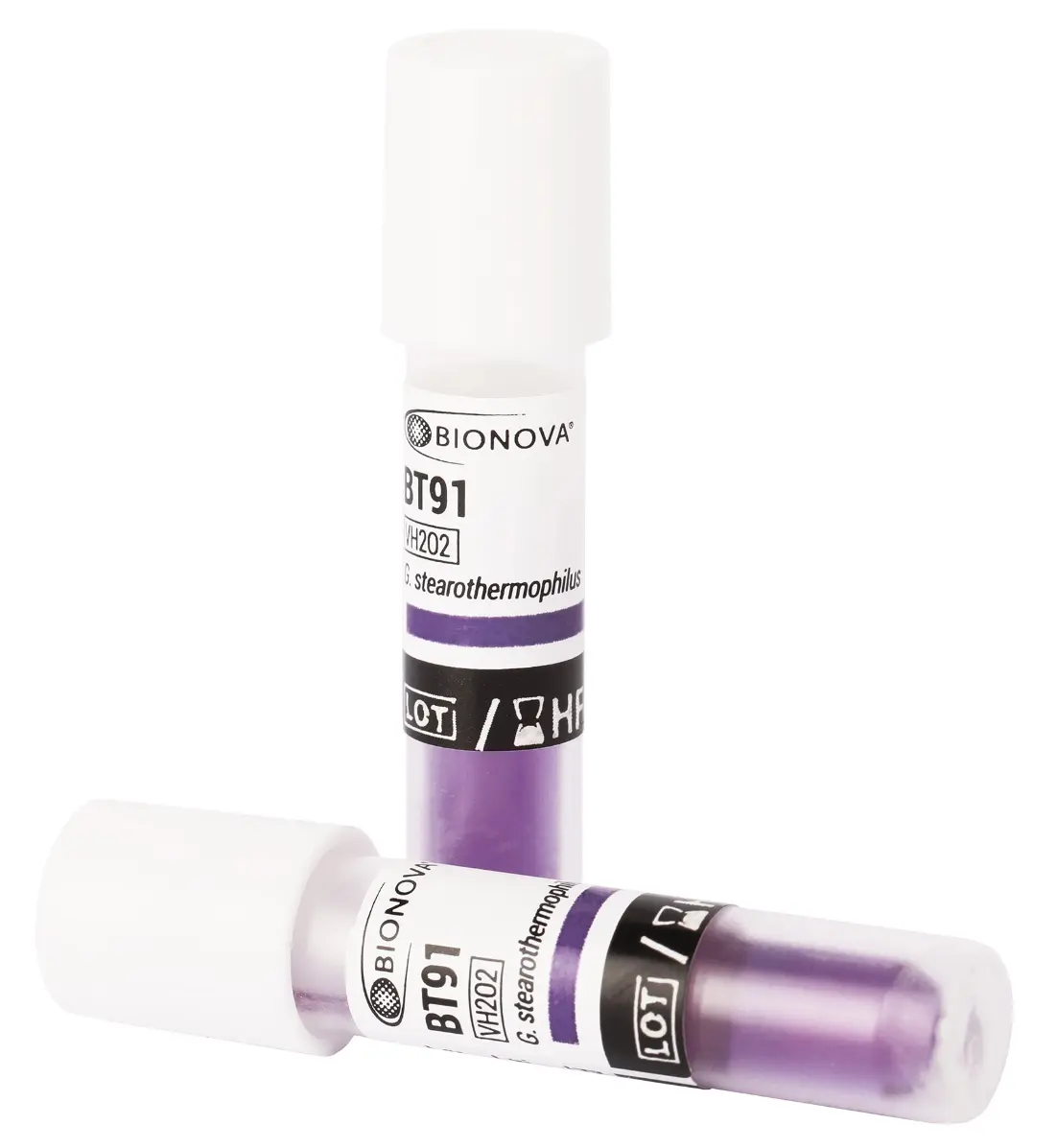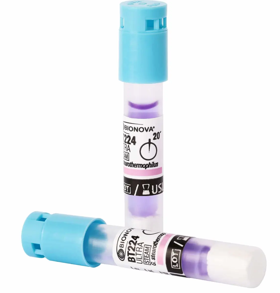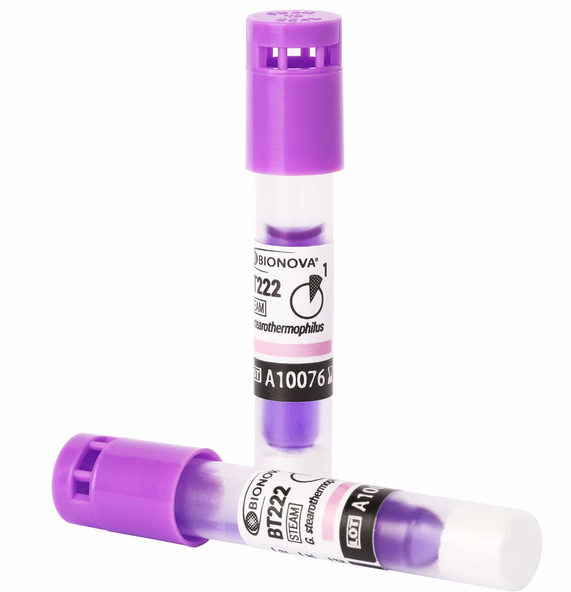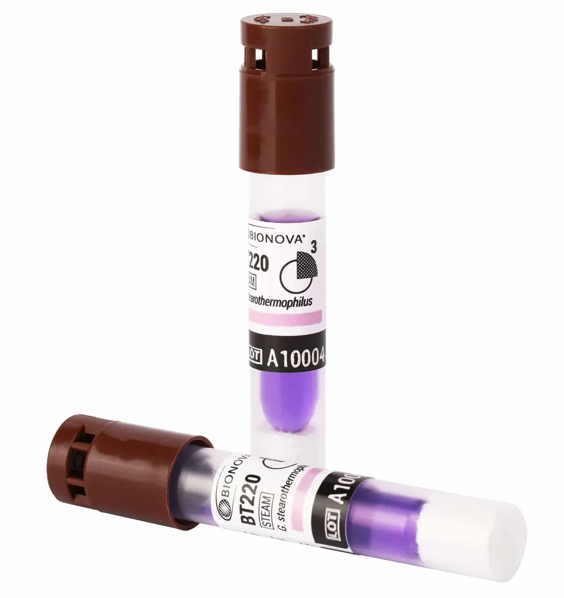 Indicador biológico autónomo para procesos de esterilización por vapor. Geobacillus stearothermophilus 10^6 esporas por vial.